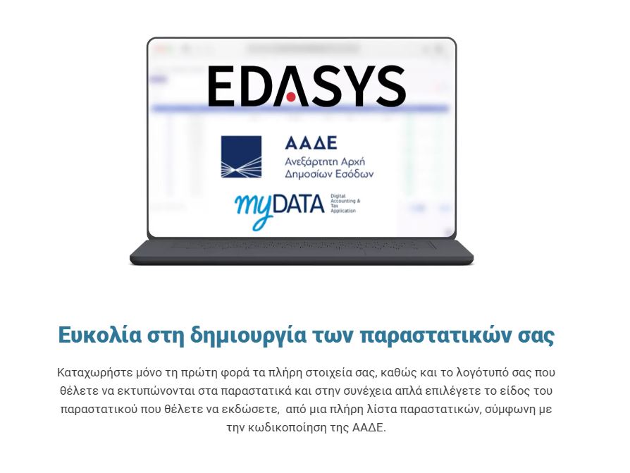Το EDASYS θα σας διευκολύνει με τρόπο απλό και ευέλικτο να διαχειρίζεστε τις καθημερινές συναλλαγές σας και να ελέγχετε όλες τις εργασίες της επαγγελματικής σας δραστηριότητας.